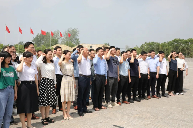 参观结束后,全体党员在黄花塘新四军纪念馆前的广场上举起右拳,高声宣誓,重温入党誓词。“我志愿加入中国共产党,拥护党的纲领,遵守党的章程……”庄严肃穆的重温入党誓词仪式,使每一位党员的心灵再一次接受洗礼,进一步增强党员的神圣感、责任感和使命感。随后,大家还共同合唱了《唱支山歌给党听》,用歌声忆党恩、感党情,时刻铭记初心使命,践行党章要求,永葆党员本色,以嘹亮的歌声向党的百年华诞献礼。