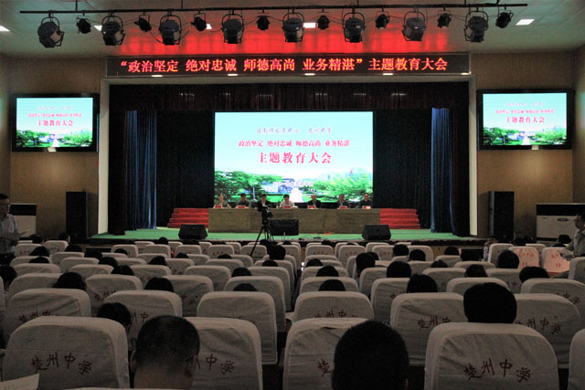 为深入学习贯彻习近平总书记关于教育的重要论述和传达、学习、内化全区教育系统主题教育大会精神,进一步强化师德师风建设,努力打造政治素质过硬、业务能力精湛、育人水平高超的高素质教师队伍,按照区教育体育局的统一部署,5月10日,楚州中学持续开展“政治坚定、绝对忠诚、师德高尚、业务精湛”主题教育活动。淮安区教育体育局副局长高云海出席大会并讲话。