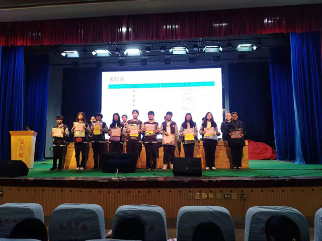 随后,杨洋副组长宣读了本次测试中成绩优异的学生名单,并对获奖学生进行了隆重颁奖。会场气氛热烈,在喜庆的音乐声中,获奖同学依次上台领奖,脸上洋溢着开心的笑容,同学们对获奖的同学报以热烈的掌声。优秀学生代表上台作表态发言,整个会场充满着快乐、进取的气氛。