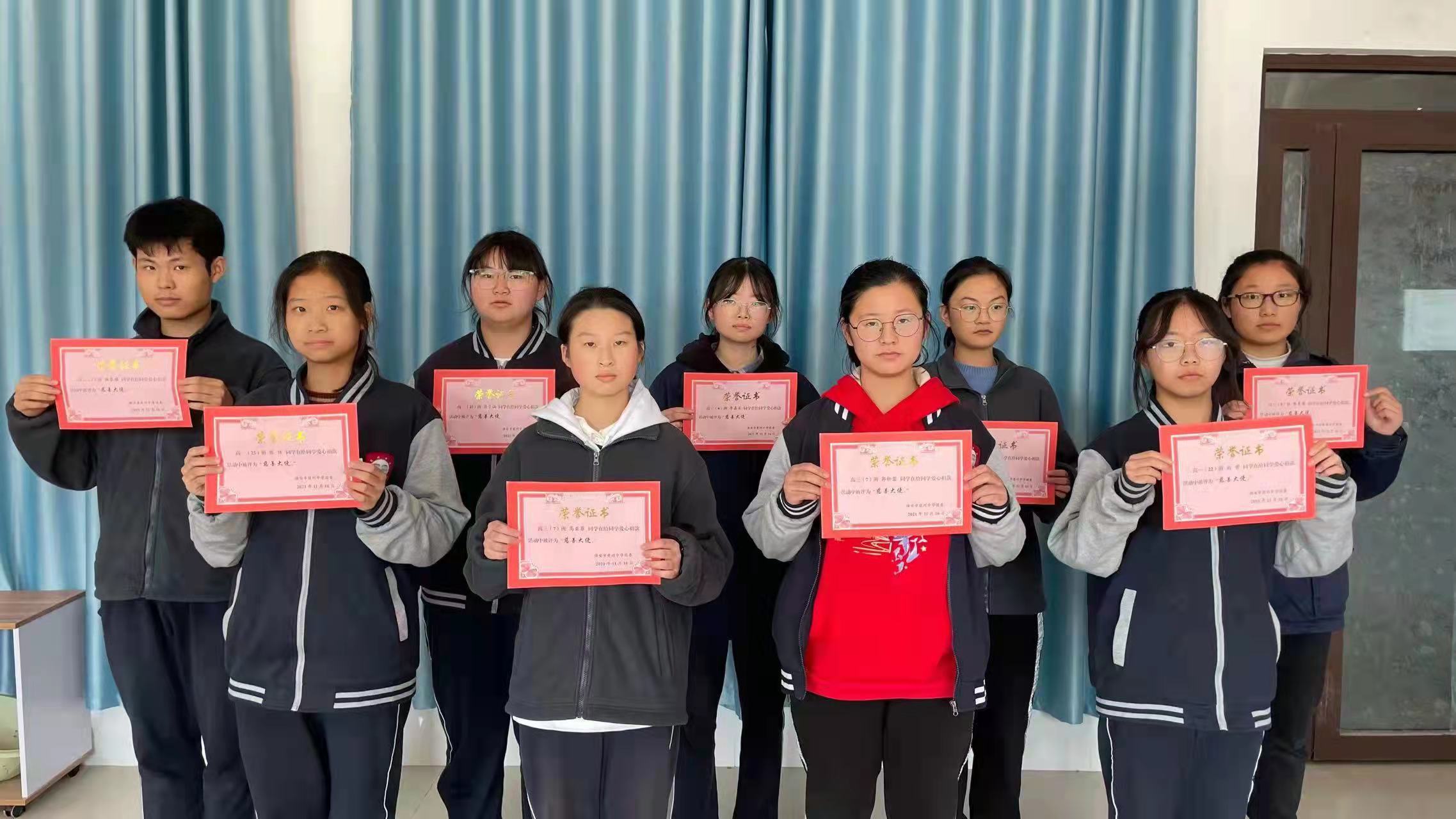 在得知高一年级朱珊苇同学的情况后,学校高度重视,把“我为师生办实事”实践活动作为党史学习教育的内容,发出了帮助朱珊苇同学的“献爱心募捐倡议”。倡议发出后,全校师生积极响应,纷纷慷慨解囊,校园里爱心传递,暖流涌动。众擎易举,众志成城。短短的一周时间,全体师生募捐金额达五万多元。朱互爱副校长一行代表学校将善款当面交给朱珊苇的父母,希望能给其女儿带去击退病魔的信心,从而早日康复,回归校园。朱珊苇同学及其父母深表感谢。校团委还向62名同学授予了“慈善大使”的荣誉称号。