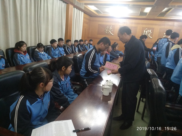发放仪式由我校资助工作负责人韩飞主持。区老区开发与扶贫“两会”副会长徐学春、秘书长毛云飞等与受助学生一起畅谈滴水筑梦助学扶贫的目的意义,一起叙谈前两学年以来受助学生的思想道德与学习成绩的变化与收获,一起设想高中最后一学年的梦想与打算,激励受助学生奋发自强、立志成才、感恩奉献。赵立同副校长在会上介绍了受助学生的生活、学习情况,代表学校向区“两会”领导的爱心行动表示感谢,并希望受助学生发扬滴水穿石、顽强拼搏的精神,用知识撬开脱贫致富的大门,用实际行动回报省市区扶贫“三会”及各界爱心人士的关爱。高三(6)班学生万马代表受助学生表态发言,表示决不辜负社会的厚爱,珍惜机遇,自强不息,用心备战高考,全力以赴心中的梦,学有所成后回报社会,把爱心的火炬传递下去,让人间处处都是爱的春天。