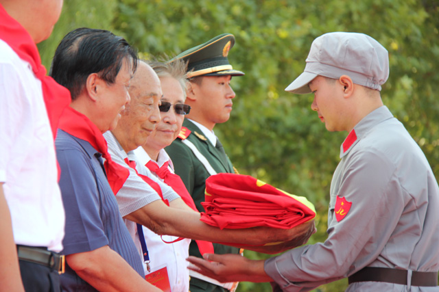 淮安市人民政府市长蔡丽新致欢迎辞;红军后代、全国红军小学建设工程理事会副理事长兼秘书长方强宣读关于成立“中国工农红军江苏省周恩来红军高级中学”的决定;苏希胜、罗箭、陈知庶、兰晓军四位将军向江苏省周恩来红军高级中学转赠曾飘扬在天安门广场的国旗,分别向江苏省周恩来红军高级中学、中国工农红军淮安大胡庄八十二烈士红军小学赠“习近平总书记和少先队员在一起”的挂像;苏希胜、罗箭将军分别为江苏省周恩来红军高级中学、淮安大胡庄八十二烈士红军小学颁发了“恩来班”班牌;中共淮安市委常委、宣传部长周毅,中共淮安区委书记、全国红军小学建设工程理事会常务理事徐子佳分别为江苏省周恩来红军高级中学、淮安大胡庄八十二烈士红军小学授习近平总书记对红军小学建设工程重要指示题词牌;全国红军小学建设工程爱国主义教育基地主任尹天成、牛建波分别为江苏省周恩来红军高级中学、淮安大胡庄八十二烈士红军小学授全国“小红星”校园足球战队队旗。