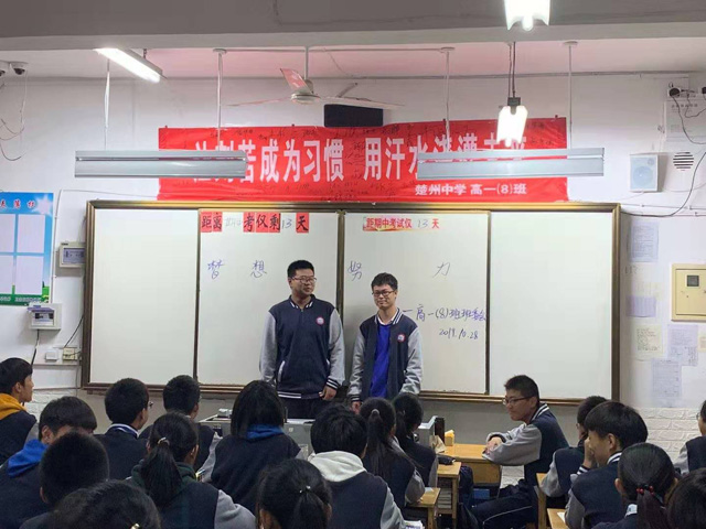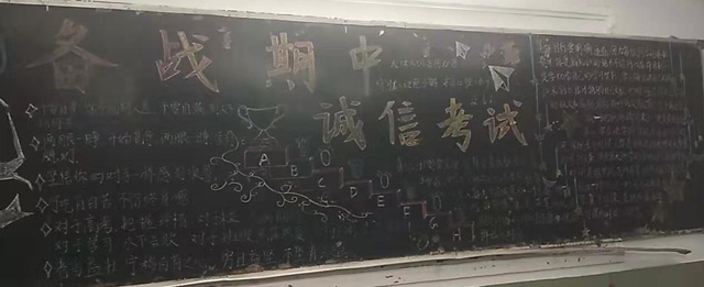 我校在每次重大考试之前均要通过主题班会、黑板报、国旗下讲话、集体宣誓等形式对学生进行学习方法和应试技巧的指导,并且已经成为我校教育教学工作的成功做法,从而形成了“励志笃学,求是力行”“知行合一,至爱至远”的校园风气,积极营造了良好的考前复习和考试氛围。
