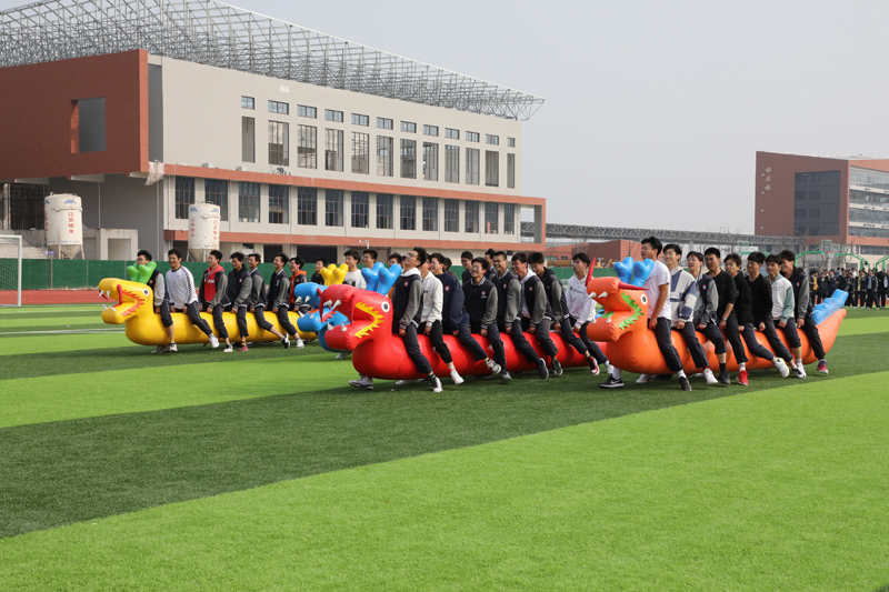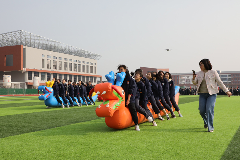 伴着和风暖阳,广大师生汇聚学校操场。同学们以班级为单位,分组参加了“陆地龙舟”和“推杆竞速”两项趣味运动。平日里一直处于紧张状态的同学们此刻放下思想负担,全身心投入各项运动。紧张、焦虑、分数,此刻化作了运动场上的欢声笑语。