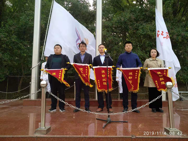 我校为十月份常规管理优胜班级授旗