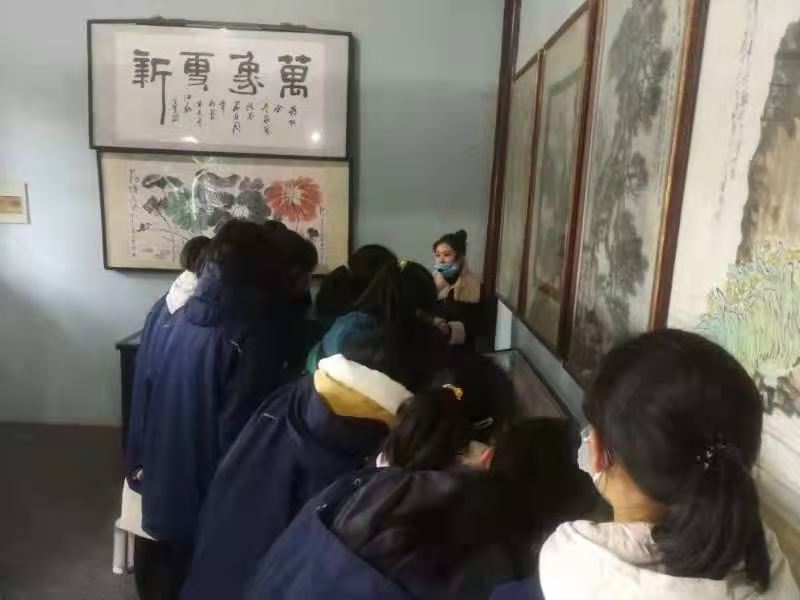 进入院门,同学们首先看到的是一片竹林,竹枝斜垂,走在铺着“人”字形青砖走道上,颇有几分隐者草庐味道。在班主任的带领下,同学们有序地参观了吴承恩生平陈列厅、玄奘纪念堂、美猴王世家艺术馆、六小龄童工作室。故居主堂屋,摆着明式桌椅,案几上放有一尊吴承恩头像,面容憔悴,饱经沧桑,让学生感受到吴承恩满腹经纶,才华过人,却饱受挫折与埋没。悟园是故居的后园,也是吴承恩创作和休憇的地方,园门楹联“灵根育孕源流出,心性修持大道生”,启示同学们吴承恩在这里“悟”出文学巨著《西游记》的思想真谛。艺术馆四周挂满美猴王脸谱,有简单的手绘版,有木雕版,一张张的照片,一步步还原了以六小龄童代表的艺术家们塑造西游经典人物的详细过程,无不让同学们体会到了演员在人物塑造中,经历的尝试、探索以及付出的辛劳。