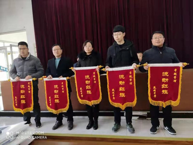 会上首先举行了颁奖仪式,向在一月份班级常规量化管理中成绩突出的高一年级11班班主任于欢、19班班主任于菁,高二年级9班班主任孙欧洲、20班班主任王正华,高三年级11班班主任沙朝文、15班班主任金国让颁发了常规管理流动红旗;向获评淮安市优秀班主任的张天飞、朱文岩老师,获评淮安区优秀班主任的陈风、罗磊、李兴华、张前前老师颁发了荣誉证书。接着,陈国强主任作了专题讲话,他着重从新学期工作思路、班务考核注意点、开学工作安排及要求等方面对新学期德育工作进行了细致的分析和讲解,并就第一次环境卫生的打扫、第一次升旗仪式的举行、第一次仪容仪表的检查、“培养成功的品质”主题班会的召开、“制止餐饮浪费 培养节约习惯”主题板报的评比、《教育部办公厅关于加强中小学生手机管理工作的通知》精神的执行等方面的新学期工作作了具体部署和要求。他要求全体班主任在德育工作中要眼中有爱,心中有爱;要用发展的眼光看工作、看学生、看成绩,择善从之;要以身作则,以德寓人,提升师德修养。副校长赵立同从学生管理、环境卫生打扫、纪律制度执行、材料信息反馈等方面对班主任工作做了具体指导。他强调班主任工作一定要突出“认真”二字,细致地做好教育管理工作;一定要继续加强校园安全工作,筑牢校园安全网;一定要积极探索德育工作新途径、新方法,不断提升管理水平,确保德育工作取得更大更好的成效。会上还组织与会者学习了题为“班级文化建设目标管理的思考”的培训材料。