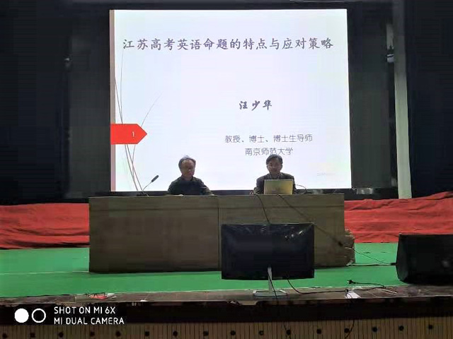 10月24日下午,南京师范大学汪少华教授应邀来我校讲学。汪教授讲座的题目是“江苏高考英语命题的特点与应对策略”,我校全体高三学生和英语教师参加了此项活动。