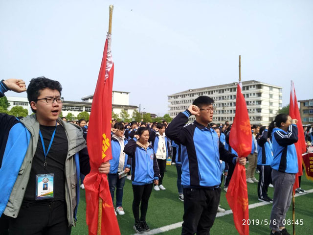 大会最后,全体师生手握右拳,以饱满的热情和激昂的斗志喊出了坚定而响亮的誓词——我以青春的名义宣誓……我是雄鹰,我要展翅飞翔;我是楚中学子,我要为校争光……表达了楚中师生传承百年五四精神、发奋读书、报效祖国、奉献社会的决心。