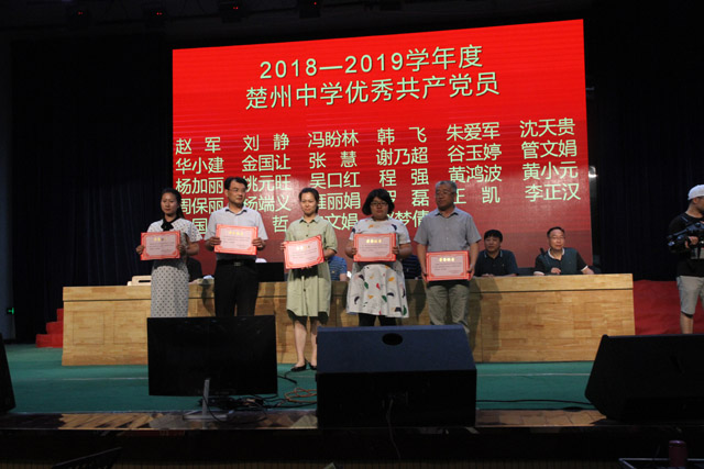 紧接着,大会表彰了本年度优秀党员,并颁发奖品。随后,全体党员重温入党誓词,庄严宣誓。铿锵有力的誓词,表现了楚中党员们牢记使命、奋发有为的决心。广大党员纷纷表示:要不忘初心、勇担使命,全身心投入学校教育教学工作中去。