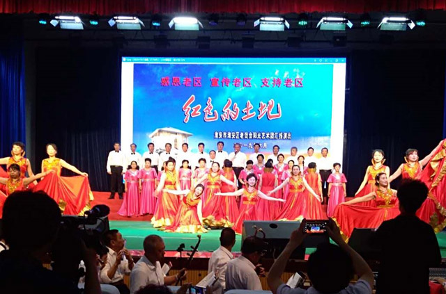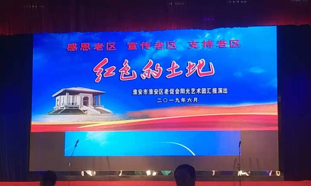 大会最后,由我校邀请的区老促会阳光艺术团,为大家带来了汇报演出“红色的土地”。演出用专题片“红色的土地”、组歌“车桥战役”、短剧“成湾故事”和舞蹈“奋进的旋律”向党的生日献礼,再现了楚州大地上红色革命事迹,突显了楚州人民与党心连心的红色本质,表达了不忘初心、牢记使命的坚定立场。