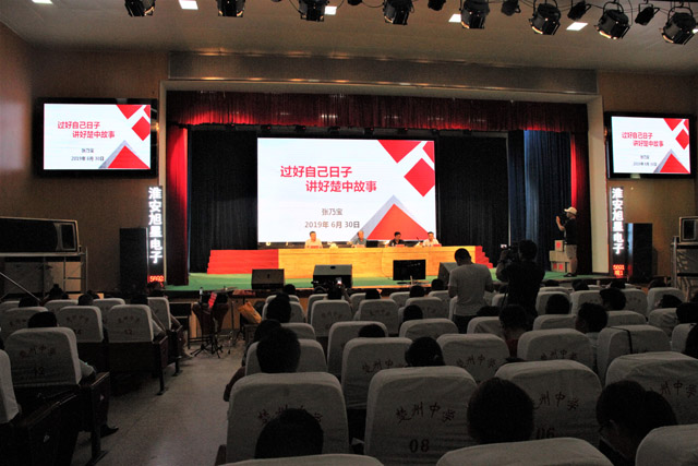 主题教育大会在《绒花》和《老师我想你》两首歌曲中拉开序幕。楚州中学党总支书记、校长张乃宝作了题为“过好自己日子,讲好楚中故事”的报告。张校长指出,我校高考成绩再创新高,离不开党的主题教育的引领,离不开党员的率先垂范。他强调要有感恩之心,感恩党、感恩学校、感恩人民;要化感恩之心为责任、为担当;要具体体现在管理精致化、过程精细化上,体现在德育严谨有序,养成教育持之以恒上。他分享了全校师生一年来的奋斗故事,用生动的照片再现了无数个奋斗的瞬间;用详实的事例讲述了师生忘我投入、不断进取的生活点滴;用饱含真情的语言抒发了我将无我,不负学校的奋斗激情;用一份份工作实绩展现了楚中人不断进取的现状。他表示,爱因懂得而珍惜,情因随行而温暖,他将和全体教职员工一起,立足本职,同心协力,为我校教育事业改革发展做出更大的贡献。