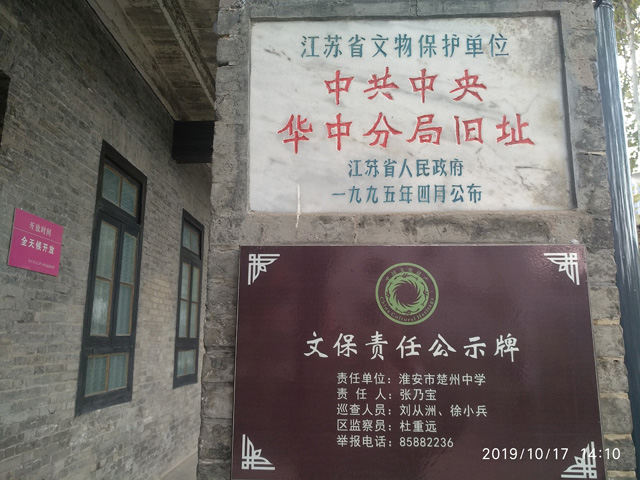 据“中国政府网”10月16日发布的《国务院关于核定并公布第八批全国重点文物保护单位的通知》(国发【2019】22号)文件精神,坐落于我校校园内的“淮安中共中央华中分局旧址”被批准为第八批“全国重点文物保护单位”。这标志着,中共中央华中分局旧址继2013年8月被江苏省教育厅批准为“江苏省红色德育课程基地”、2019年9月被国家国史学会等部门批准为“全国红军小学建设工程爱国主义教育基地”后,江苏省周恩来红军高级中学(楚州中学)在红色德育课程基地建设方面取得的又一新成果。