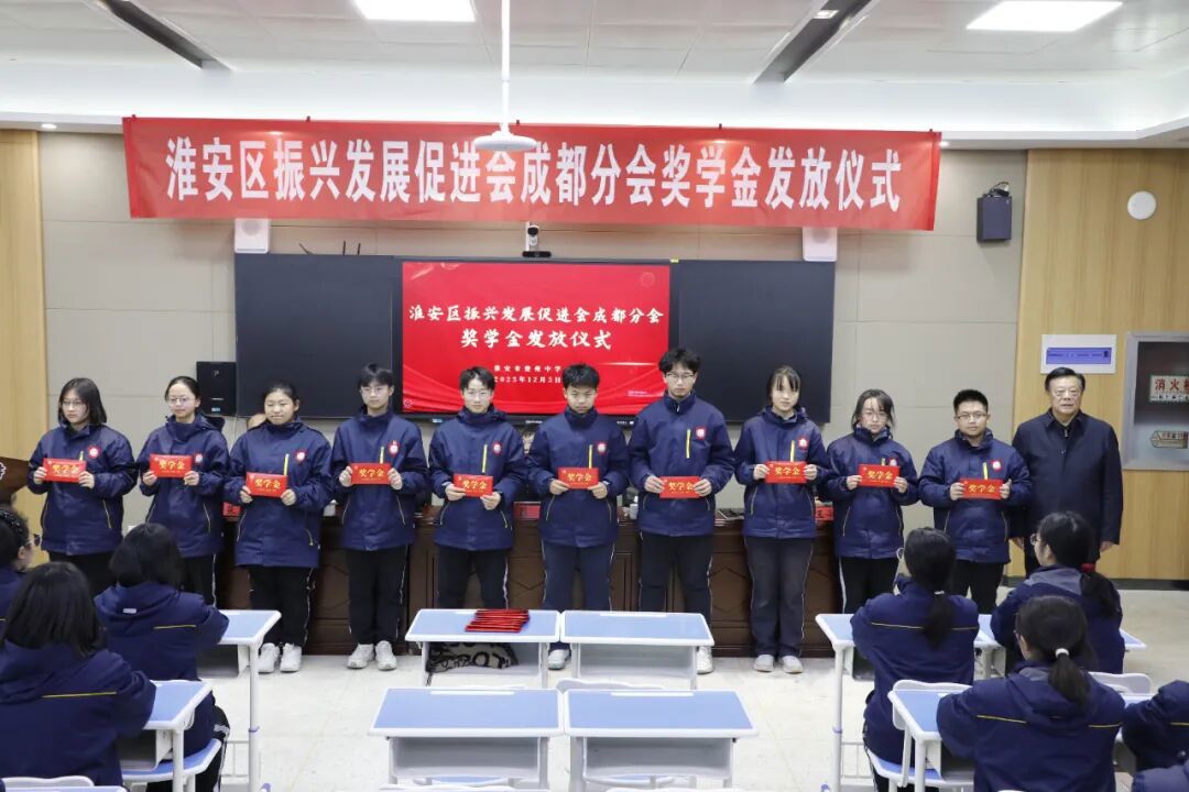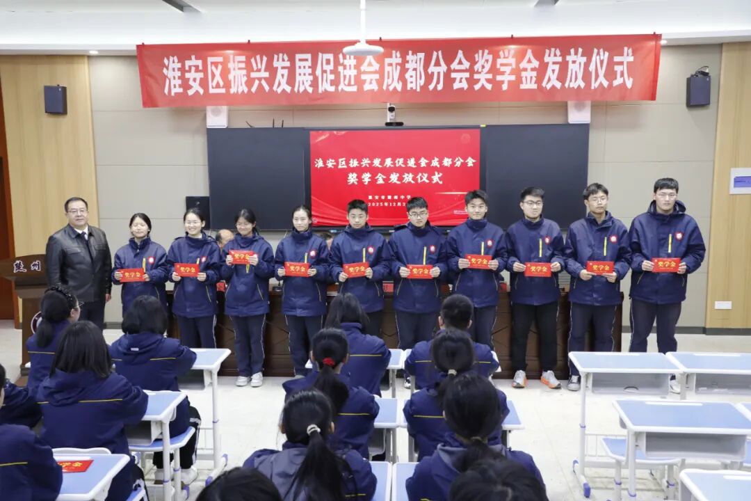 淮安区振兴发展促进会成都分会给楚州中学优秀学子颁发奖学金