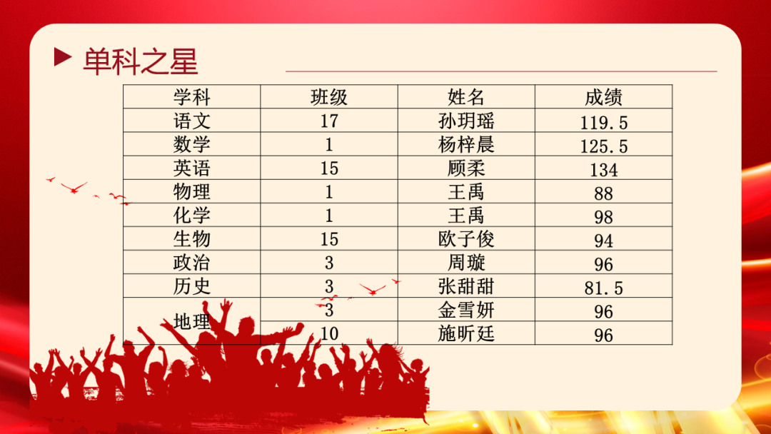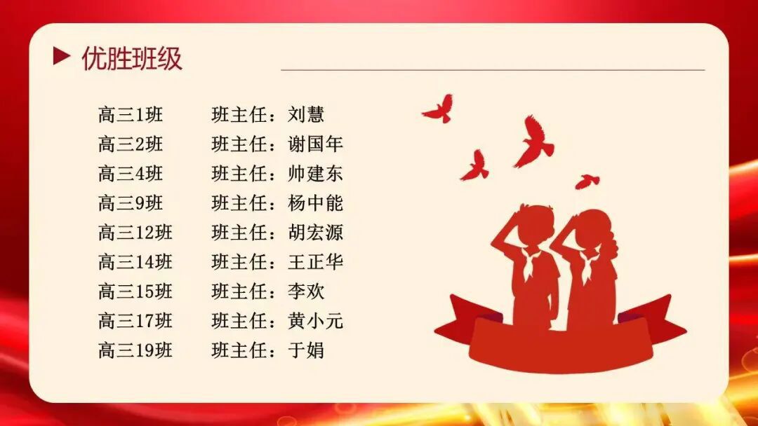 为表彰先进,树立典型,激励广大学子奋发进取,争创佳绩,近日,高三年级召开市统测总结表彰大会,副校长陶月高出席。会议由高三(I)部级部主任贾明明主持。