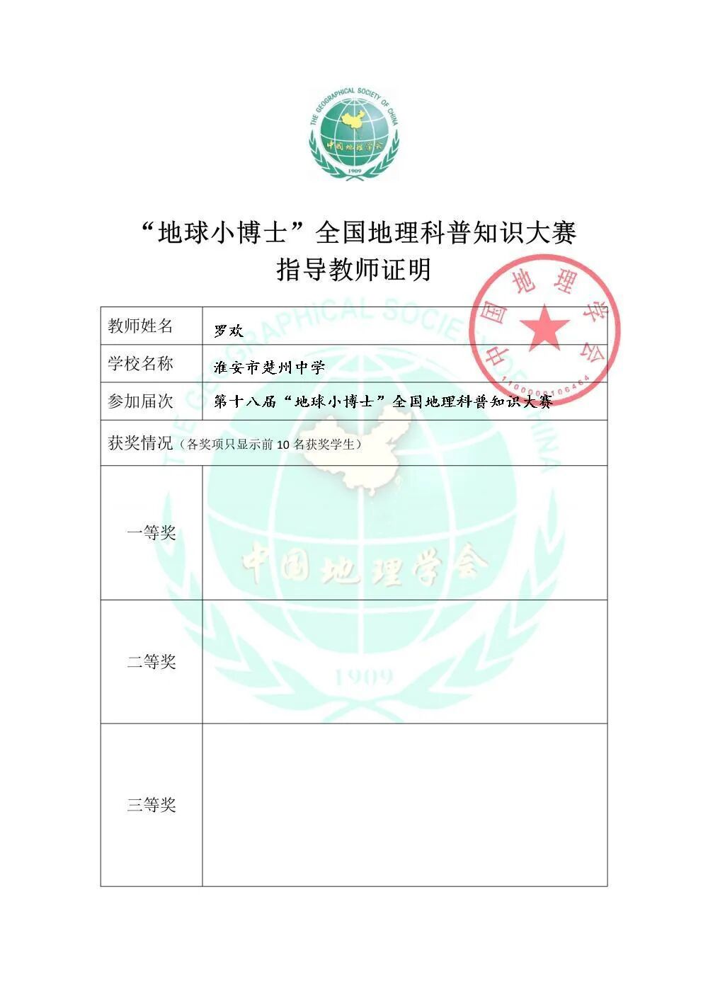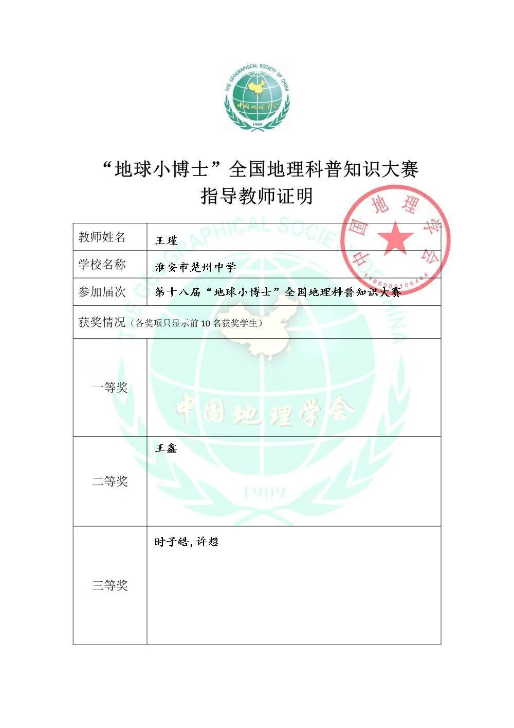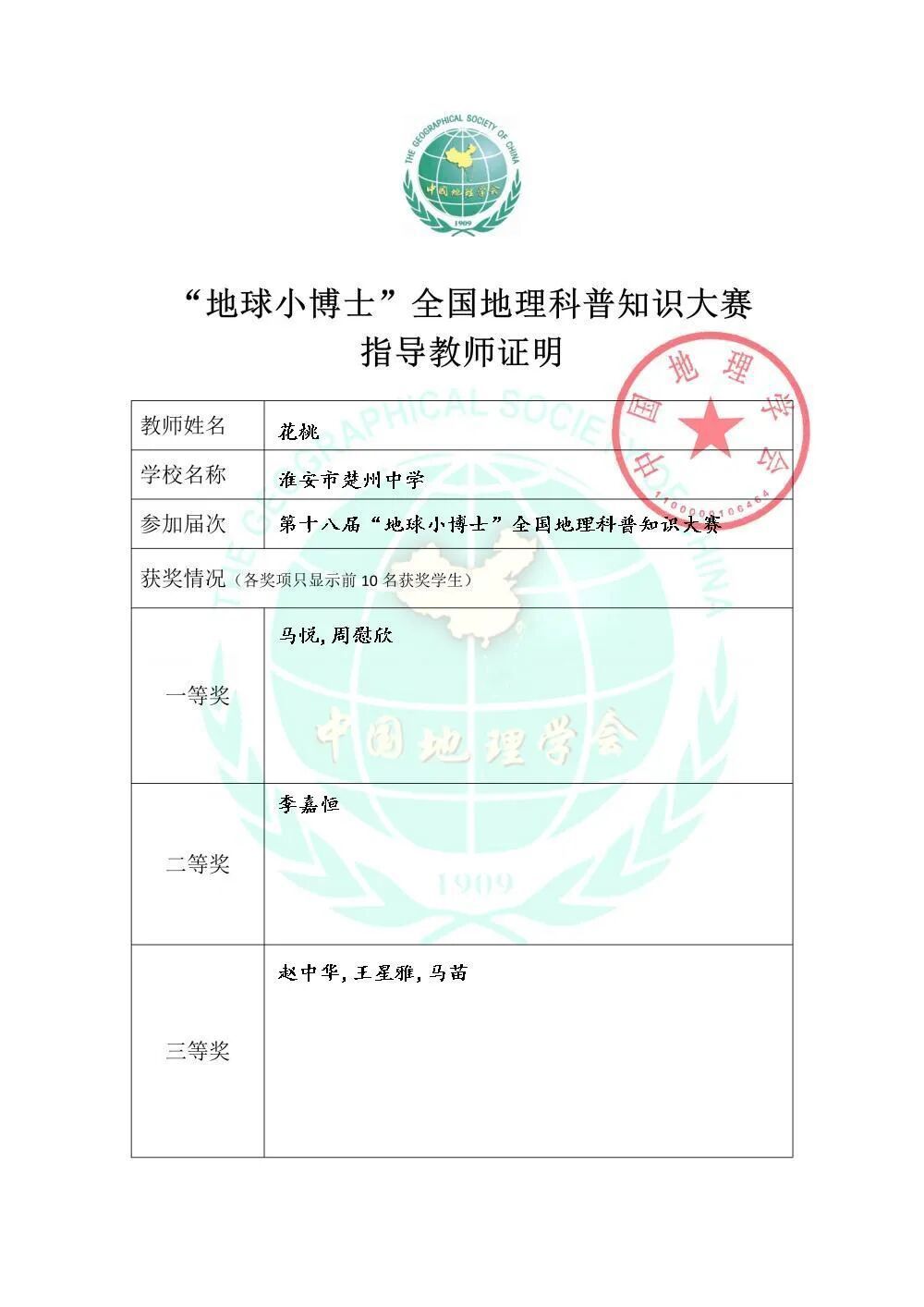 楚中喜报2025(3)|楚州中学26名学生在全国地理科普知识大赛中获一等奖