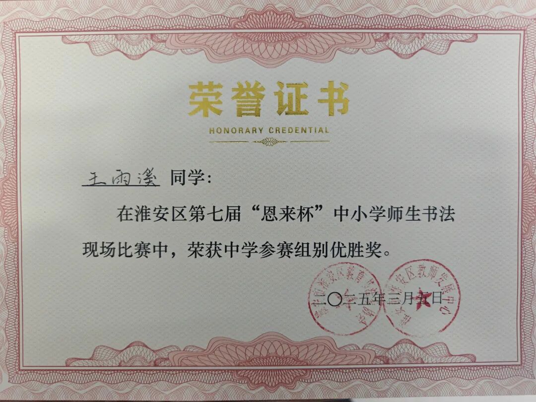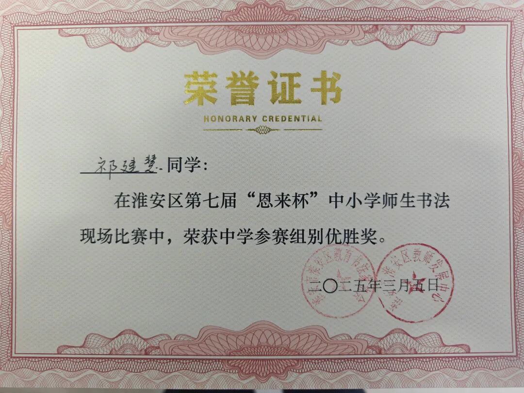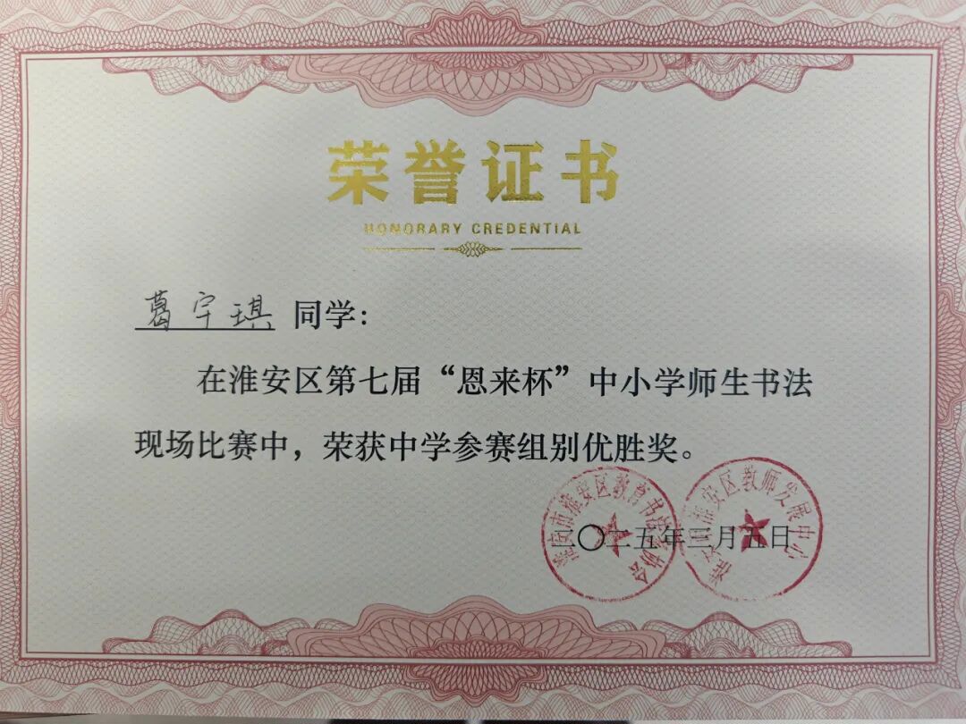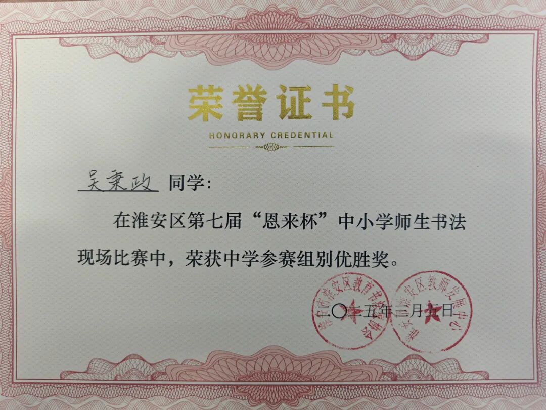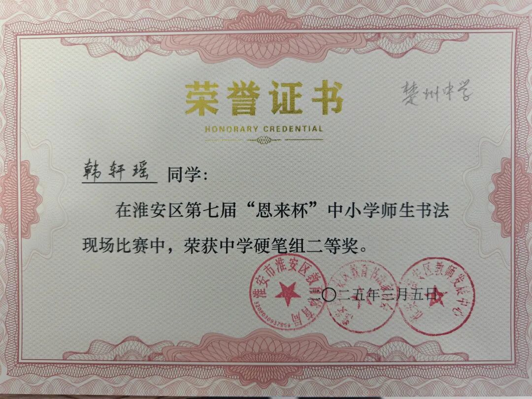 日前,由淮安区教育体育局、区教育书法家协会、区教师发展中心联合主办的区第七届“恩来杯”中小学师生书法现场比赛揭晓,楚州中学八名学子分获一、二等奖和优胜奖。