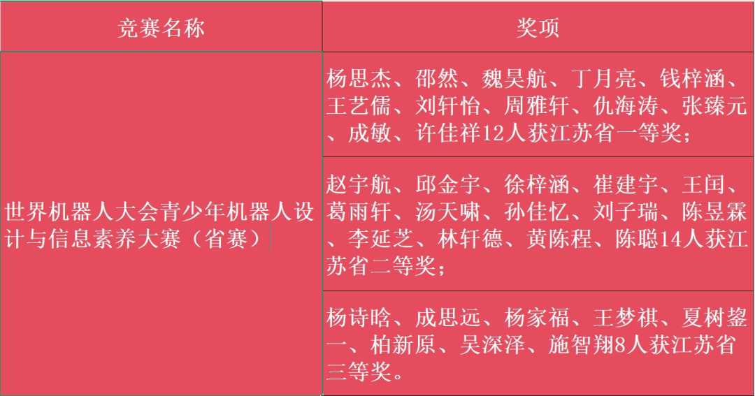 楚州中学24级科技班的成敏和许佳祥两位同学在机器人总决赛的激烈角逐中,凭借扎实的专业知识和卓越的实践能力,获得全国三等奖;杨思杰、邵然、魏昊航、丁月亮、钱梓涵、王艺儒、刘轩怡、周雅轩、仇海涛、张臻元、成敏、许佳祥12人获江苏省一等奖。这一优异成绩是我校科技创新教育成果的有力见证,同时,这份荣誉也将成为一盏明灯,照亮更多同学走上机器人学习与研究的道路,激励他们在科技的浩瀚星空中勇敢探索,攀登新的高峰。