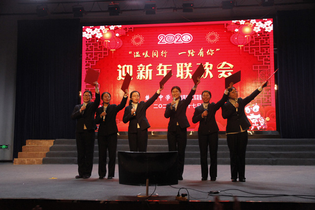 金猪辞旧岁,玉鼠踏春来。1月17日晚上,楚州中学(江苏省周恩来红军高级中学)南校区大礼堂彩灯闪烁,欢声笑语,全校教职工欢聚一堂,举行了2019---2020学年度第一学期期末总结表彰大会暨教职工迎新年联欢会。