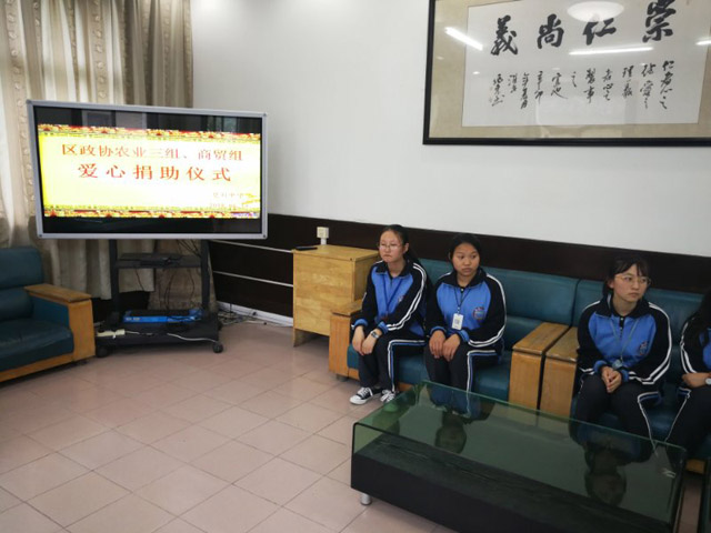 捐助仪式在我校丽正楼二楼会议室举行。我校朱锦富副校长、工会刘姝副主席及14名受助学生出席了捐助仪式。首先,由陈祖敏、胡运兴委员任组长的区政协农业三组吴胜等委员对我校高一年级高佳男等6名品学兼优的困难学生进行了帮扶,捐助了6000元慰问金。接着,由钱静委员带队的区政协商贸组崔友春、吉洪飞、刘赟、姜正华、施志峰、齐明、黄强等委员为我校高一年级唐家琪、高二年级吴家兴等8名困难学子发放了8000元慰问金,进行了一对一的帮扶。
