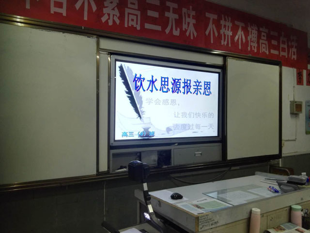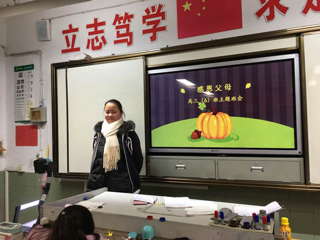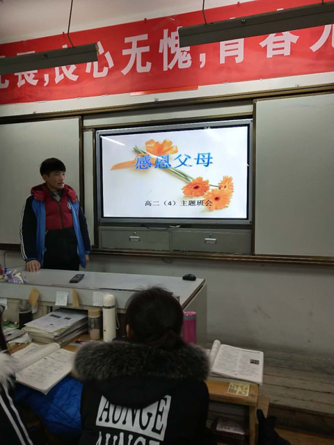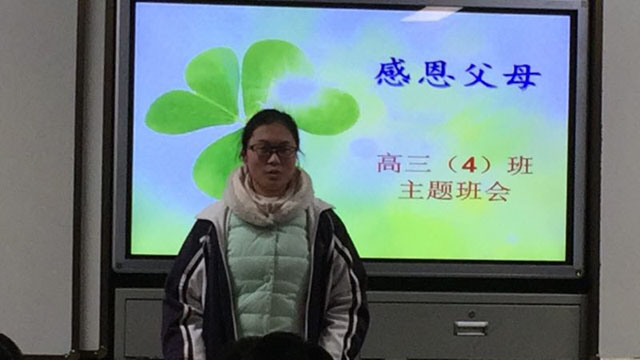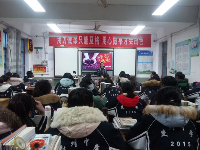 主题班会课上,班主任老师首先组织同学们集体观看了有 “中国启智训练第一人”之称的李强所作的题为《感恩父母》的“前沿讲座”演讲视频,接着组织学生欣赏了感人至深的以“感恩父母”为主题的系列美文和图片,然后组织全班学生开展讨论、抒发感受,最后发动每位同学撰写一封热情洋溢的“感恩”家书,书信里包含有学校生活情况汇报、学习计划和决心以及感激父母养育之恩等内容,并将书信作为冬季里献给父母的暖心礼物,在元旦到来之际邮寄或亲手交到父母的手中。