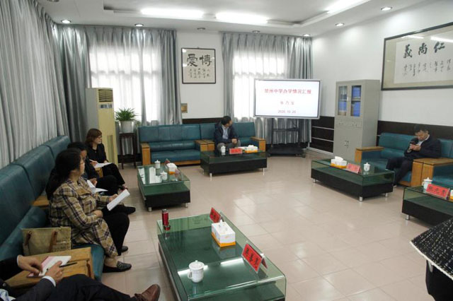 校党总支书记、校长张乃宝首先向考评组专家汇报了学校的办学条件、办学规模、师资队伍、荣誉表彰、教学教研、党建工作、疫情防控、新校区建设等方面情况。