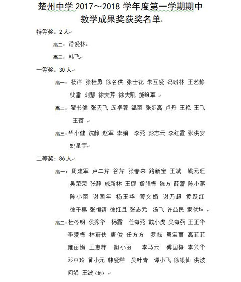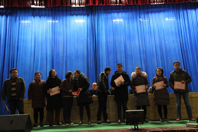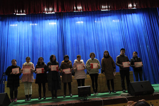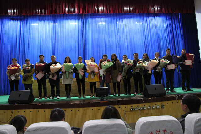 大会对根据半学期以来教学、教科研实绩评选出的15个优秀备课组及组长、168名教学成果奖获得者进行了隆重的表彰,并在企业的赞助下对获奖者进行了物质奖励。受表彰的老师们分批走上领奖台,接受全体教职工热烈的掌声和由衷的祝福。