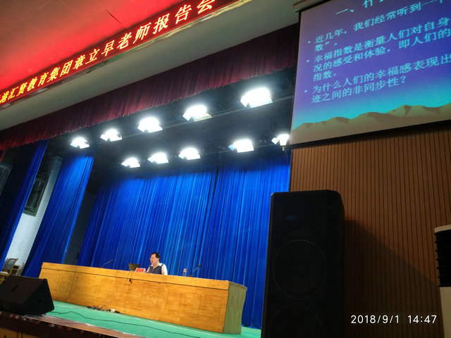 作为教师,你觉得幸福吗?教师职业能给教师带来幸福感吗?如果教师能在工作中体验到幸福感的话,其幸福感从哪里来呢?为了进一步提升新时代高中教师的职业幸福感,9月1日下午,我校在南校区大礼堂举行报告会,特邀香港汇贤教育集团金牌讲师章立早老师来校为全校近400名一线教师作了题为《做一个幸福的教师》专题报告,校工会主席咸春华主持报告会。