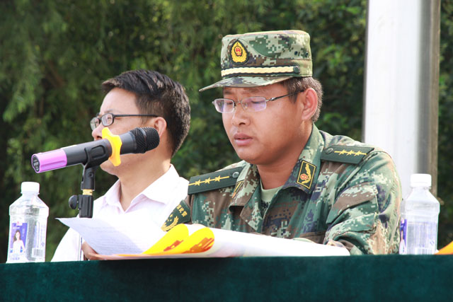 经过六天的艰苦训练,我校2014级高一新生在市武警支队教官的精心训练下,圆满地结束了军事训练活动。8月26日上午8:00,我校全体参训师生、教官在南校区操场隆重举行军训闭幕式暨军训成果汇报表演。军训总指挥武龙宝校长、军训团长金步兵副校长以及市武警支队领导、区教育局领导阙君主任出席了闭幕式,仪式由我校政教处主任郭家忠主持。