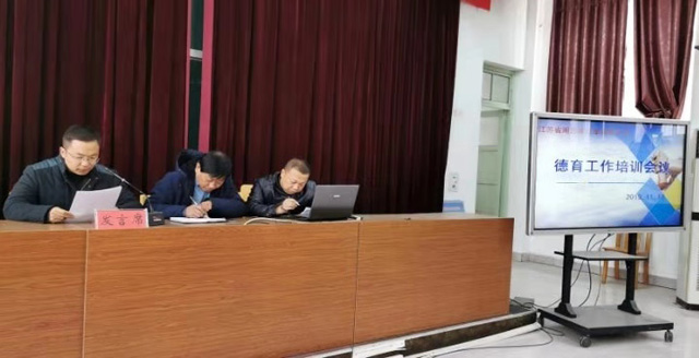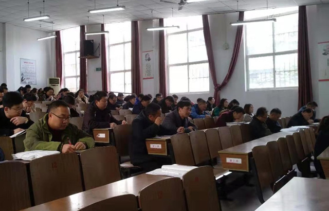 为进一步落实“立德树人”的德育工作指导思想,打造一支学习型的德育工作团队,提高班主任的专业能力、业务水平和管理能力,11月18日下午,我校在南校区文典楼阶梯教室召开了十一月份德育工作培训会。分管副校长赵立同出席培训会,全体年级组长、班主任、政教工作人员及宿舍管理人员参加了培训,德育处陈国强主任主持培训会。