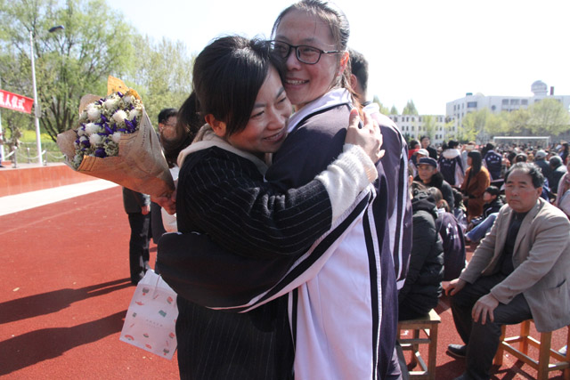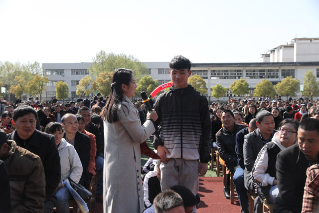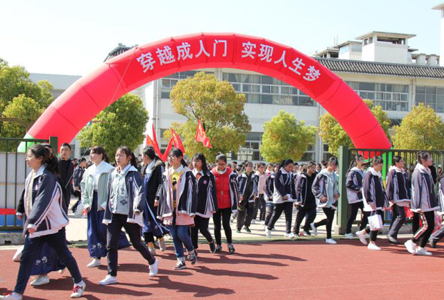 伴随着《好好努力》那激励人心的歌声,活力四射的年轻学子开始穿越成人门,拉开了成人礼的帷幕。我校团委书记陈军满怀激情地列举我国取得的伟大成果,激起了全场学子励志成才,为中华民族伟大复兴而努力奋斗的决心和渴望。国歌奏响,国旗升起,同学们注目国旗,满脸的自豪与自信。家长语重心长的叮嘱、老师亲切温馨的回忆、同学们亲切热情的吟唱,让仪式现场充满温馨,洋溢激情。当同学们凝视师长、拥抱父母、现场感恩之时,全场沸腾。这一刻,父母心中的孩童长大了,成人了;这一刻,老师心中的学子明礼了,懂事了。“懂事明理,自立自强;感恩父母,回报社会;……挑战自我,决胜高考;学成栋梁,报效祖国。”宣誓声,声震林木,响遏行云。