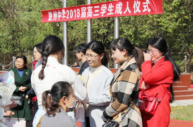 为推进文明礼仪养成教育,践行社会主义核心价值观,强化学生成人责任意识,4月7下午,我校在南校区操场隆重举行第七届成人礼仪式。校长张乃宝,副校长朱傲雪、赵立同出席仪式,高三全体师生及家长参加活动。