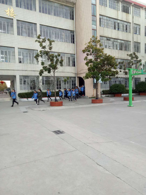 演练以教学楼某班突发火灾险情危及校园师生人身安全为假想事件。下午3点30分,伴随着刺耳的警报声,校园广播里传来疏散指令。正在上课的教师及时打开教室前后门,察看学生行走路线上有无障碍物,镇定指挥学生有序撤离。学生们按照事先培训要求,自行分成南北两路,分别从前后门向教室外撤离。1000余名师生在楼层安全导护员的科学疏导下,按照指定路线,有序、快速、安全地撤离教学楼,到达操场集合点。整个演练历时3分48秒,圆满完成疏散演练任务。随后,保卫科刘从州科长向师生们讲解了各类火灾险情的特点、分析了引发火灾险情的原因。他引述多个典型火灾案例,介绍了火灾的基本规律、火灾预防的方法,特别是应急疏散、初期火灾的扑救以及如何拨打119报警、逃生自救等。