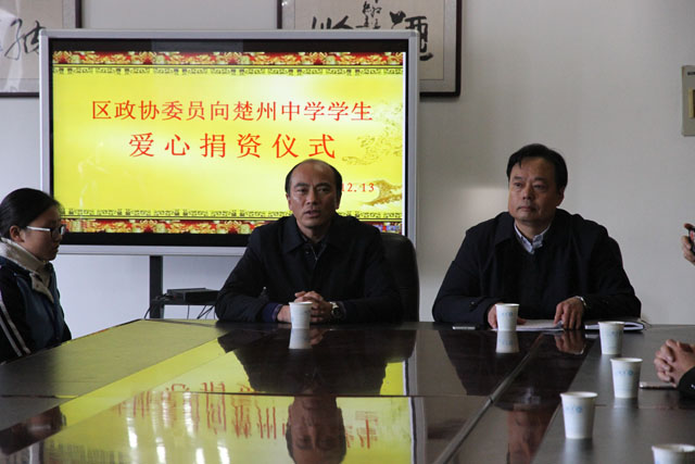 12月13日上午,区政协委员、农工部主任科员倪志群携区政协农业二组部分委员代表到我校举行爱心捐资仪式,区政协委员们为该校8名学生送去了8000元善款。我校校长张乃宝、党总支办公室副主任黄芳及部分学生代表出席了仪式。