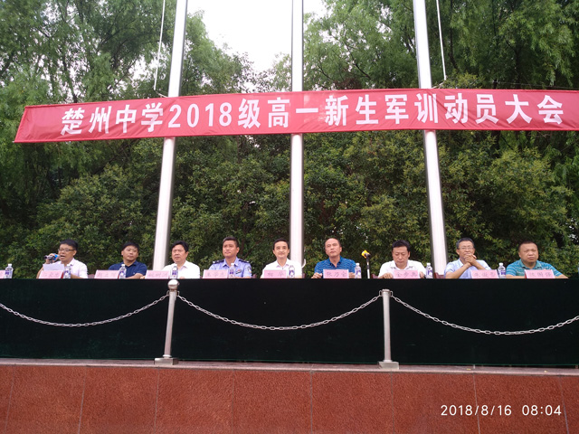 接着,区教育局副局长相华发表了重要讲话,他说,楚州中学是一所历史悠久的学校,是我区公办教育的一面旗帜。多年来,学校积淀了浓厚的文化底蕴,形成了良好的育人氛围。去年,学校获得教育部表彰的“国防教育特色学校”和全省唯一的“中华通韵实验学校”的荣誉称号。2018届高考,楚州中学取得558人本科达线的优异成绩,许多同学如愿考上了985、211名校,楚州中学向淮安区百姓交上了满意的答卷。我们有理由期待:作为楚州中学最新鲜的血液,你们的到来必定会让楚州中学的明天焕发更新的光彩,也必然会为楚州中学创造更大的辉煌。开展新生军训工作,是《国防法》、《兵役法》、《国防教育法》的规定,是学校素质教育的需要,更是加强国防后备力量的需要。你们是祖国的未来,振兴中华民族的重任已经落到你们的肩上,机不可失,时不我待,希望你们发扬周恩来总理“为中华之崛起而读书”的精神,努力拼搏,发愤读书,以优异的成绩,为楚州的教育事业和经济振兴作出自己应有的贡献。