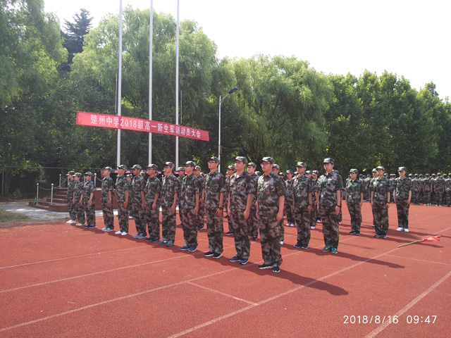 为了培养高一新生的爱国情操和自立自强精神,让他们体验军营生活,锻炼自身意志,懂得吃苦耐劳,学会团结协作,强化国防和纪律意识,经淮安市教育部门批准,我校于8月16日起开展为期一周的2018级高一新生军事训练活动。16日上午8点,军训动员大会在我校南校区运动场召开,淮安区教育局副局长相华、教育科科长姚树洲,区巡特警大队队长王学志,我校校长张乃宝,副校长金步兵、朱傲雪、赵立同,高一年级班主任、军训教官、20个班级1050名新生出席了大会,大会由政教处主任郭家忠主持。