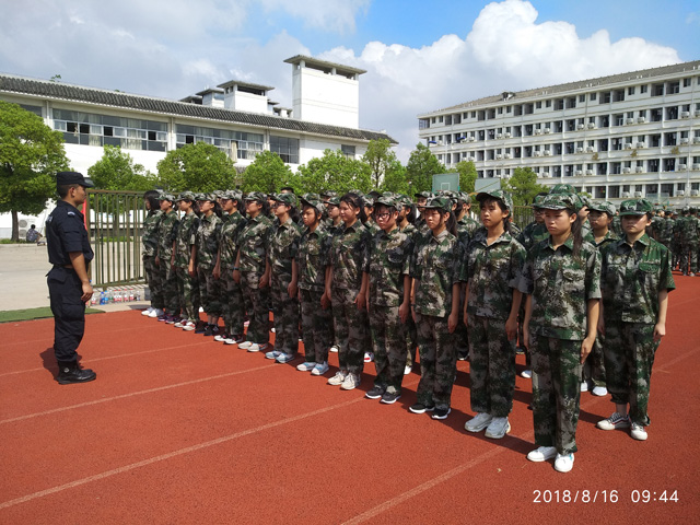 最后,副校长金步兵宣布了2018级新生军训营长、排长名单,副校长朱傲雪向两名营长授予了营旗,全体教官进行了队列示范表演,从而正式拉开了我校2018级高一新生军训的序幕。