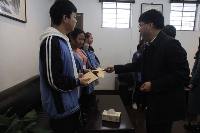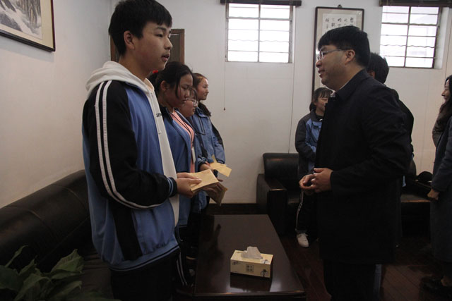 潘海平及政协委员们与受助学生进行了亲切交谈,了解他们的生活、学习情况,并为六名品学兼优的贫困学生每人送上助学金1000元。潘海平副局长希望受助学生把爱心关怀化为动力,努力学习,用自己的实际行动和聪明才智建设好祖国和家乡,积极回报社会,把爱心传递下去。