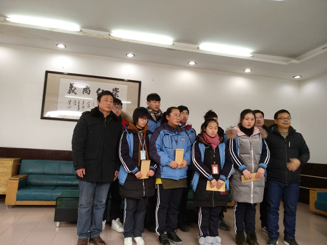 捐助仪式上,委员们向我校高一高二年级梁馨月等八名学子每人捐赠了2000元助学金。周其光副局长发表了激励性的讲话:一是告诉学生们贫困是暂时的,在党和政府的关怀下一定能克服困难;二是鼓励他们要增强自信,做到精神上不贫瘠;三是希望他们努力学习,学有所成后更好地回报社会;四是表示要将此项帮扶活动坚持下去,长期关注他们的成长,直到他们完成学业。金步兵副校长代表学校向委员们表示感谢,并希望受资助的学生学会感恩,把各界爱心人士的关爱化为成长的动力。