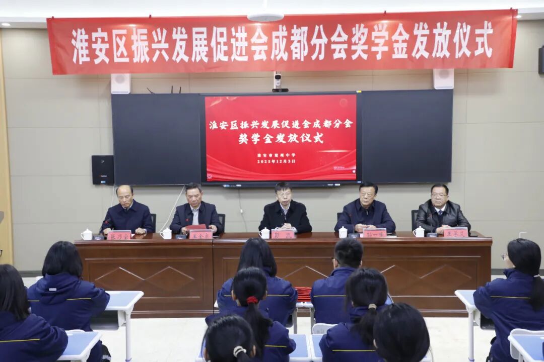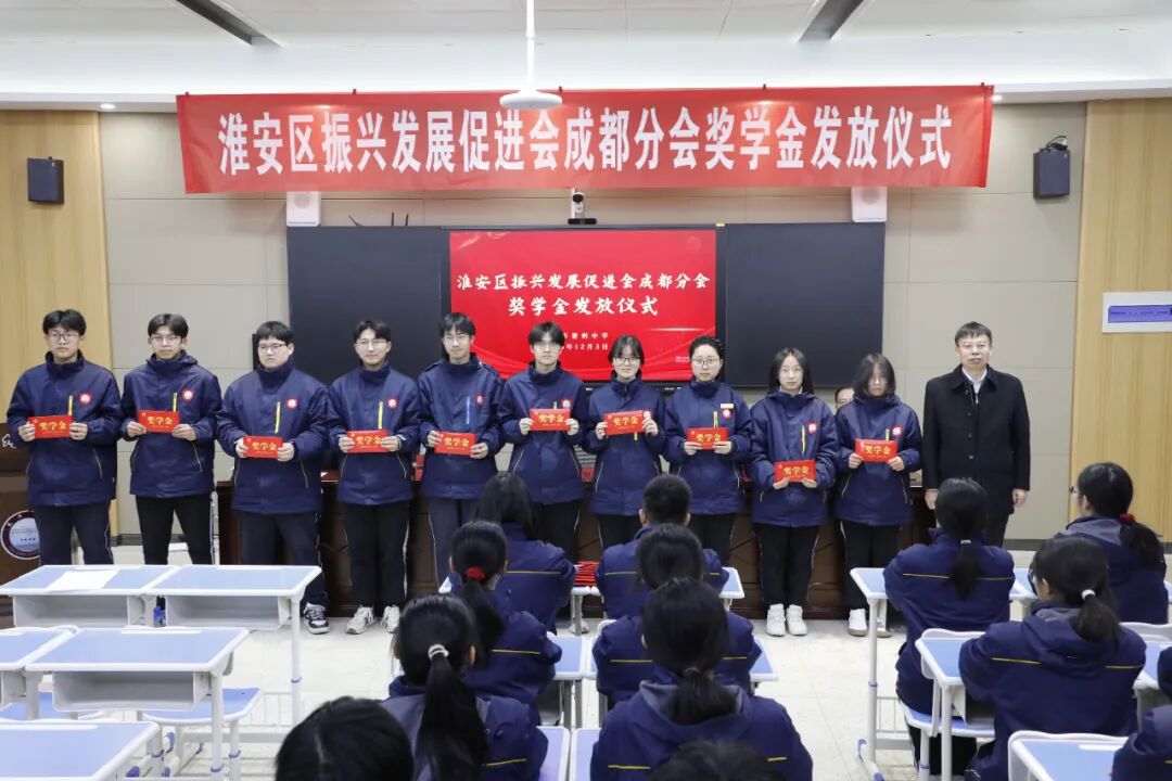 淮安区振兴发展促进会成都分会给楚州中学优秀学子颁发奖学金