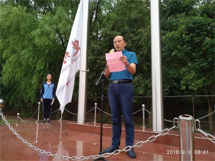 接着,我校政教处主任陈国强布置了新学期的几项工作:一是重申校园内学生穿着校服、使用手机、进出校门等相关规定,二是继续做好全国文明城市创建、国家卫生城市复审工作,三是开展好习惯养成月活动。