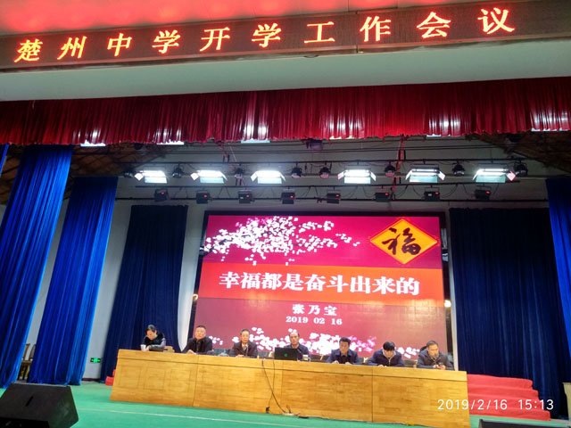 我校党总支书记、校长张乃宝在会上作了题为“幸福都是奋斗出来的”开学工作报告。张校长首先简要回顾了学校过去一学期在各项工作中所取得的成绩,高度赞扬了全体同仁立足本职、乐于奉献、勇于创新的精神。接着他从四个方面对新学期工作提出了具体要求:一是要进一步增强规范意识。要立规矩、画方圆、明底线,要把“规范”落在实处。二是要进一步增强目标意识。核心目标就是要引领学生健康成长,科学提高学业成绩。要增强教学有效性,要细化教学流程管理,要高度重视特殊学生群体。三是要进一步增强身份意识。要尊重学生个体的不同需要、不同发展潜力、不同的性格特征,公平公正地对待每一位学生,用发展的眼光看待、赏识的力量激励、多元的眼光评价学生。要通过努力,让每一位进入楚中的学生都发光。四是要进一步增强竞争意识。学校要想生存下去,只能用百倍的奋斗来打破生源决定论。张校长最后引用习总书记“幸福都是奋斗出来的”幸福观来勉励全体同仁在新的学期里要勇于追求梦想和幸福,要把个人发展的具体目标同学校崛起的宏大目标结合起来,并为之而奋斗;同心同向同行,开拓奋进创新,让淮安市教育喜看楚中师生走向新的天地。