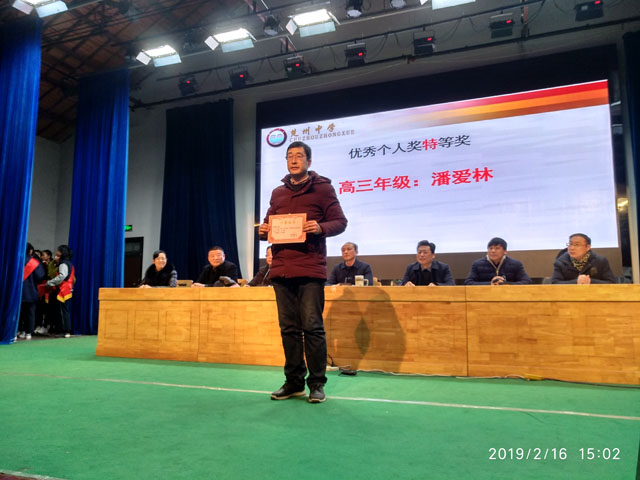 会上,还举行了第一学期教学成果奖的颁奖仪式,表彰奖励了25个班级优秀团队、114名教学优秀个人。其中优秀团队奖一等奖6个、二等奖12个、三等奖7个;优秀个人奖特等奖1人、一等奖9人、二等奖48人,三等奖56人。同时,会议还宣读了《关于表彰2018-2019学年度第一学期优秀备课组长、优秀班主任、先进工作者、优秀行政人员的决定》,对上学期涌现出来的20名优秀备课组长、27名优秀班主任、112名先进工作者、11名优秀行政人员进行了表彰。在热烈的掌声中,受表彰的同志豪情满怀,未受表彰的同志也摩拳擦掌、跃跃欲试,自信和幸福激荡在每一位参会者的心中。