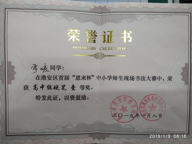 据悉,本次书法比赛活动的目的是:丰富师生的课余文化生活,展示淮安区中小学师生的风采,引导广大青少年学生深切感悟实现中华民族伟大复兴的梦想,进一步营造校园文化艺术氛围,推动校园文化建设再上新台阶,迎接中华人民共和国建国70周年。