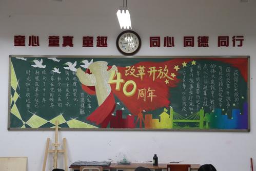 为庆祝改革开放40周年,加强爱国主义教育,丰富校园文化生活,日前,我校组织开展了“庆祝改革开放40周年”主题黑板报比赛活动。