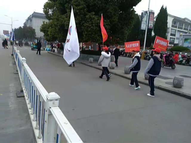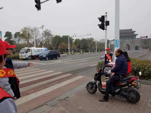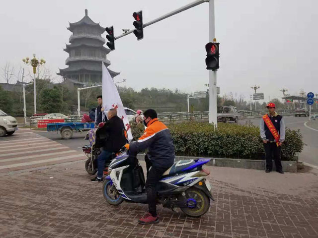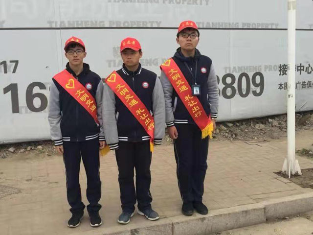 活动开始前,我校对学生进行了交通安全培训,并讲解了交通安全劝导技巧和安全防护注意事项,以此增强学生的文明交通劝导能力和自我保护意识。随后,我校团委负责老师带领学生志愿者分头开展文明交通劝导活动。一部分学生组成宣传队手举“文明交通树新风,礼让出行显文明”宣传标语行走城区主要街道进行安全出行宣传;一部分学生戴着红色的志愿者标语,在十字路口、红绿灯下、车流量大的路段,协助交警维持交通秩序,引导行人过马路、走斑马线,劝告电动车驾驶人文明驾驶。