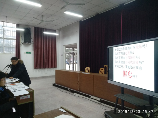 观摩结束后,陈国强主任率领参会人员学习了理论文章《班级特色活动建构与班主任思维品质提升》,并就冬季课间开窗通风、期末学生评语撰写、期末安全教育加强、期末迎考氛围营造、升旗集队速度提升、优秀班主任推介等工作作了布置。他要求全体班主任,要按照序时进度完成好期末工作,让考核评优成为教育学生、提升学生自我管理的助推器;要加强常规管理,为复习迎考创设条件和氛围;要做好安全工作,在抓学生成绩的同时,高度重视学生的教育管理和行为管理,为期末复习迎考创设一个良好的条件。
