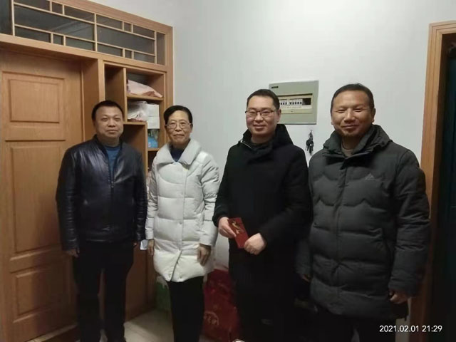 牛年将至,岁寒情深。在新春佳节来临之际,由校工会牵头,楚州中学陶月高、朱互爱、张锐三位分管年级校领导及级部主任分三组深入到优秀教师代表家中走访慰问,向一年来奋斗在教育教学一线的教师和一年来为学校的发展付出努力的教职员工送去节日的祝福和新春的问候。