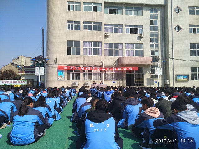 为进一步引导我校广大青少年树立社会主义法治理念和法治意识,养成遵纪守法的行为习惯,巩固学校法制教育成果,维护学校安全稳定的大好局面,4月1日下午,我校分别在南北两个校区操场召开了法纪教育大会,特邀淮安区人民检察院未成年人检察科科长张士海为全校师生作了一场题为“远离犯罪,健康成长”的法纪教育报告。