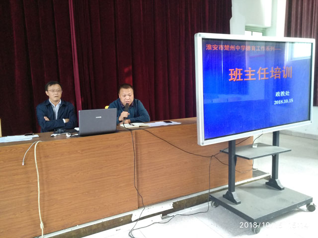 为进一步加强班主任队伍建设,提高班主任工作水平,10月15日下午,我校在文典楼阶梯教室召开了班主任德育工作培训会,副校长金步兵、赵立同出席会议,全体级部组长、班主任和政教处工作人员接受了培训。